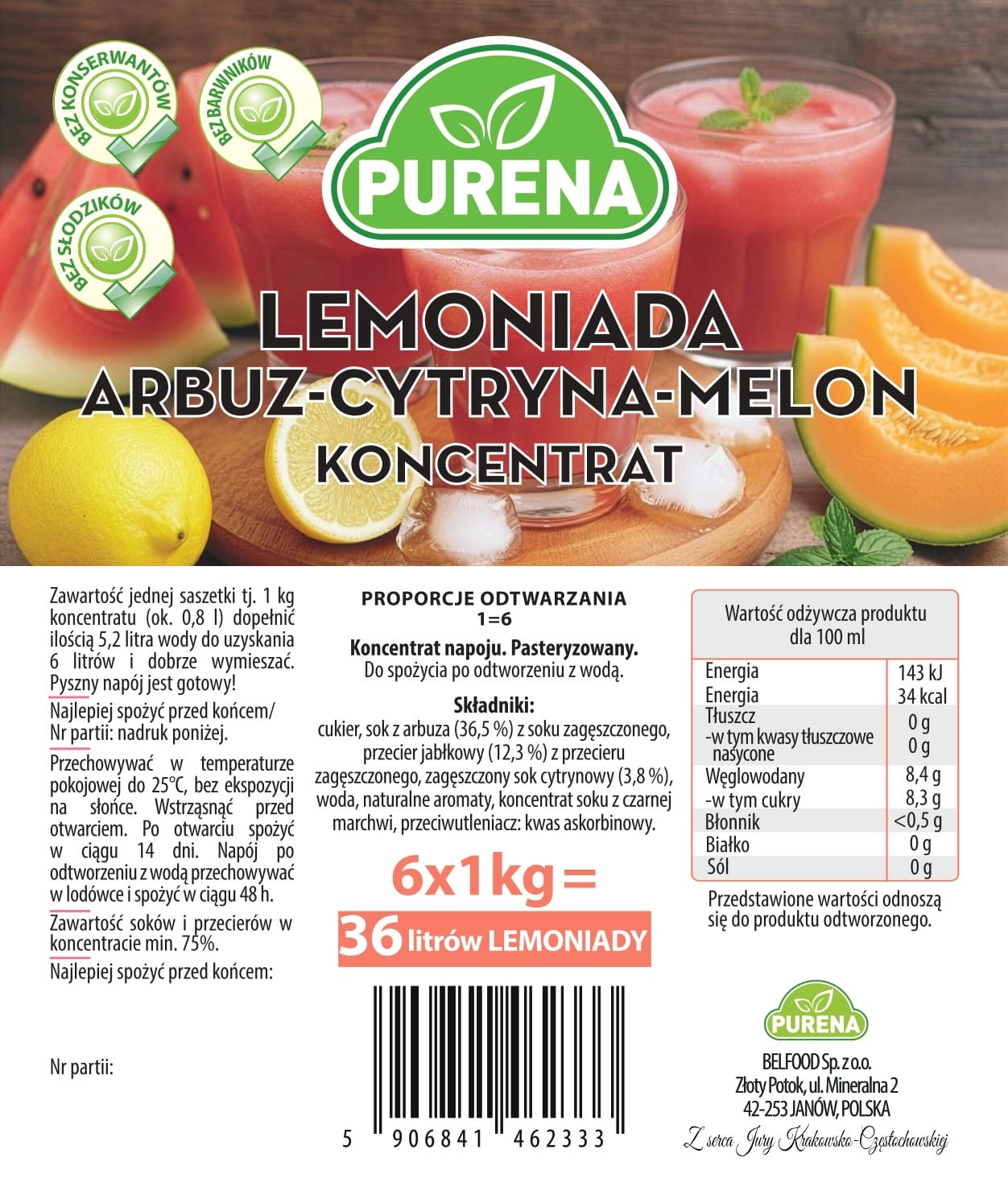 Lemoniada arbuz-cytryna-melon koncentrat 1 kg na 6 L