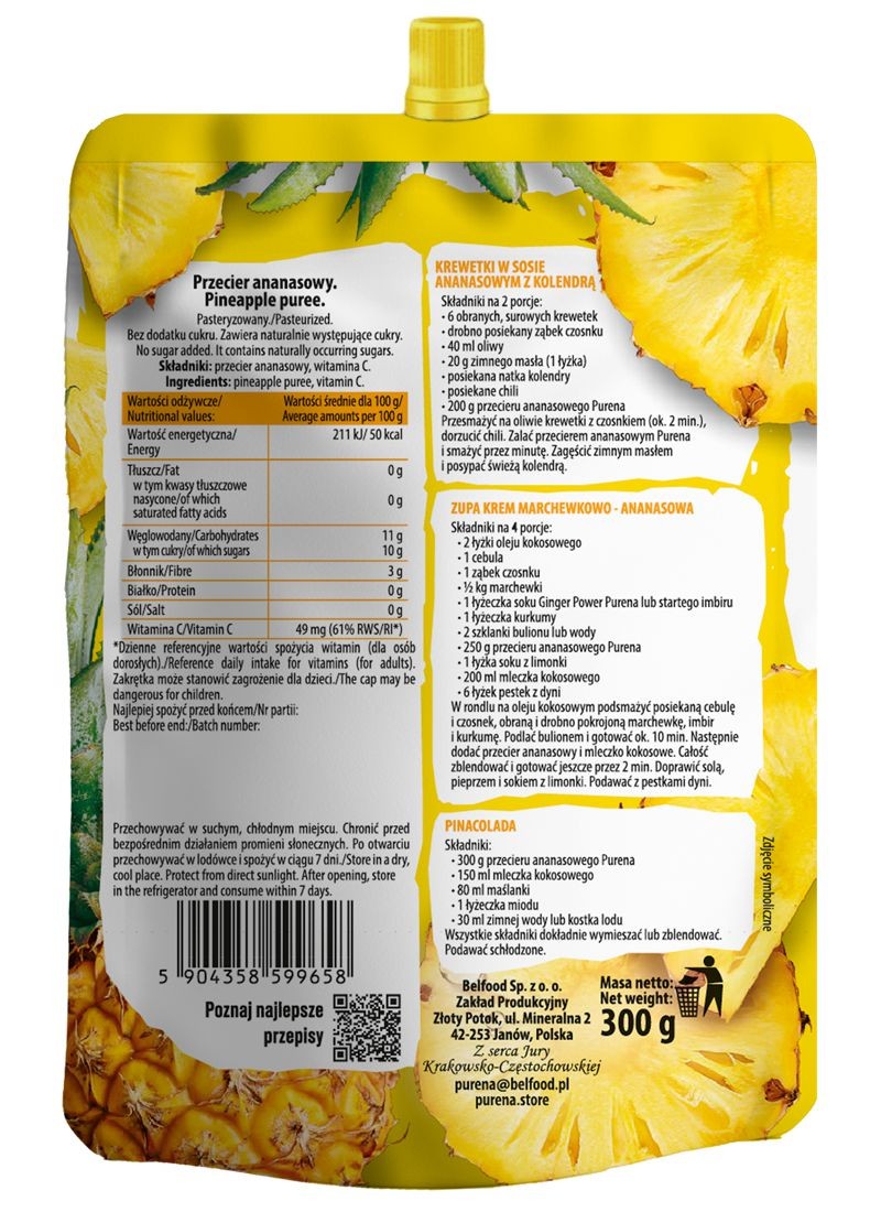Rozpocznij razem z nami egzotyczną podróż kulinarną. Od teraz komponowanie nowych przepisów kuchni azjatyckiej stanie się proste i przyjemne. Już nie musisz szukać dojrzałego owocu, aby wykonać z niego pyszne danie. Wystarczy, że sięgniesz po nasz przecier, który jest odpowiednikiem jednego ananasa.