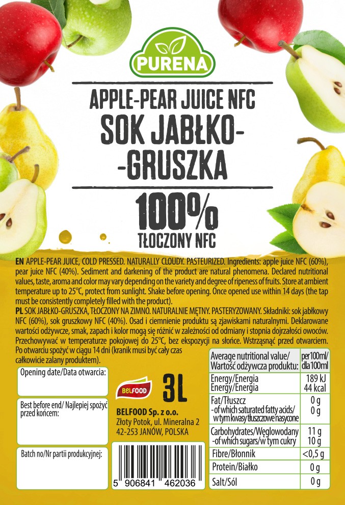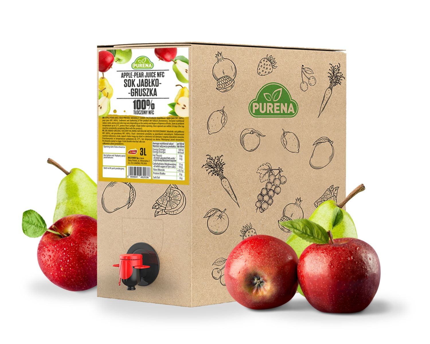 Sok jabłko-gruszka 100% tłoczony na zimno NFC PURENA 3 L