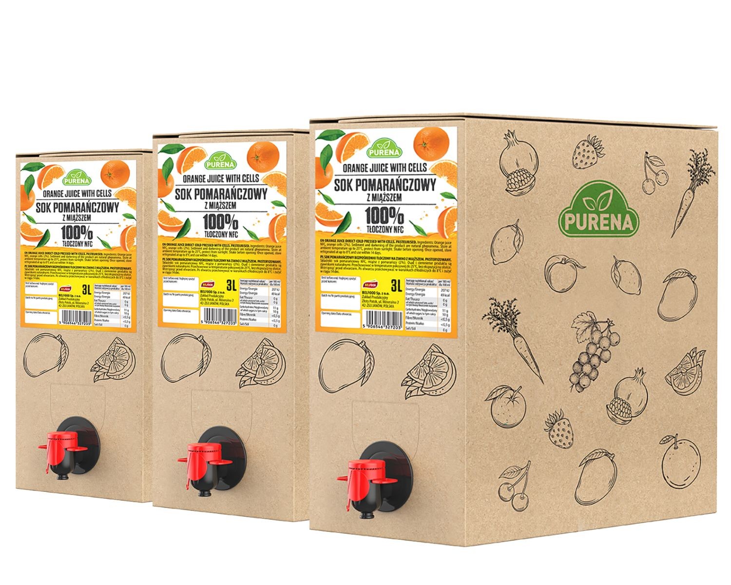 Sok pomarańczowy 100% z miąższem tłoczony NFC PURENA 3 L x 3 sztuki